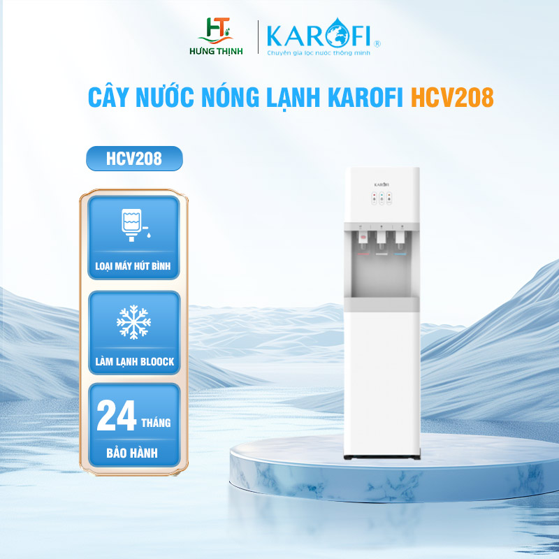 Karofi HCV208 là dòng cây nước nóng lạnh hút bình mới nhất, tích hợp công nghệ làm lạnh sâu bằng block, tiết kiệm điện năng và thiết kế hiện đại, phù hợp cho gia đình, văn phòng, cửa hàng, trường học…
