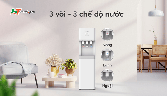 Thiết kế sang trọng, tinh tế: Karofi HCV208 sở hữu thiết kế vuông vắn, chắc chắn với gam màu trắng xám hiện đại, dễ dàng bố trí trong nhiều không gian khác nhau. Cửa trước dạng tủ kín giúp giấu bình nước, tăng tính thẩm mỹ và gọn gàng.