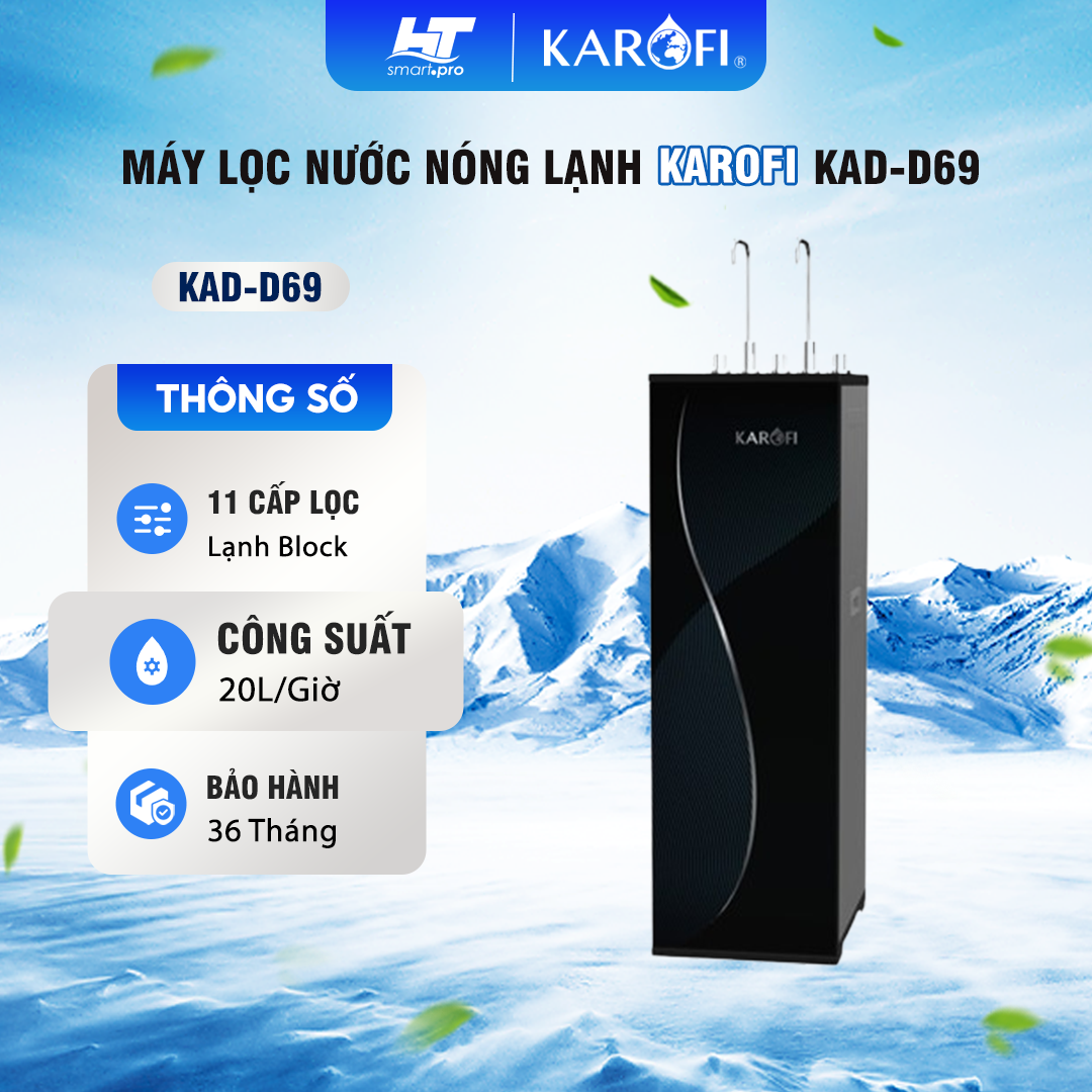 Máy lọc nước nóng lạnh Karofi KAD-D69 là một trong những sản phẩm công nghệ tiên tiến nhất hiện nay trong lĩnh vực xử lý nước uống. Với thiết kế hiện đại và nhiều tính năng vượt trội, sản phẩm này đã trở thành sự lựa chọn hàng đầu của nhiều gia đình cũng như văn phòng. Bài viết dưới đây, Tổng Kho HTSmart Pro sẽ giúp bạn hiểu rõ hơn về máy lọc nước nóng lạnh Karofi KAD-D69, từ giớ thiệu đến các chi tiết kỹ thuật.